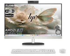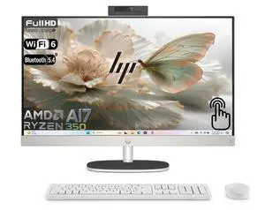 HP 27" FHD All-in-One Touchscreen Desktop PC AMD Ryzen AI 7 350 (Beat Ultra 7 255H) AMD Radeon 860M 32GB DDR5 RAM 1TB SSD Wi-Fi 6 BT 5.4 RJ45 Wireless KB and Mouse 1080p Webcam Windows 11 Home White