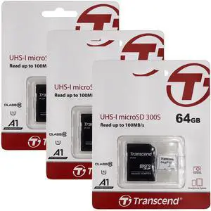 3 Unit Transcend 64GB 300S UHS-I microSDXC Memory Card with SD Adapter