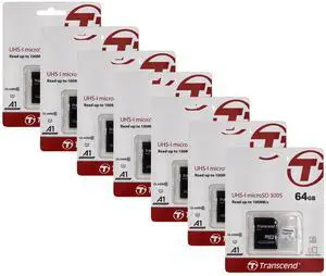 7 Unit Transcend 64GB 300S UHS-I microSDXC Memory Card with SD Adapter