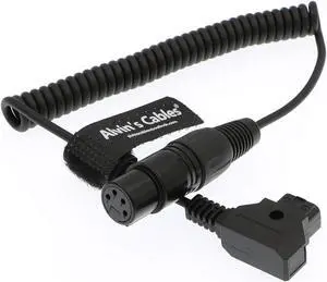 Alvin's Cables XLR 4 Pin Female to D Tap Coiled Power Cable for Practilite 602 DSLR Camcorder Sony F55 SXS Camera