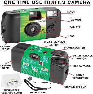 QuickSnap Flash 400 Disposable 35mm Camera + Hand Strap + Quality Photo Microfiber Cloth (3 Pack)