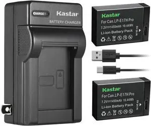 Kastar 2-Pack LP-E17H Pro Battery W/ Type-C Cable and AC Wall Charger Replacement for Canon LP-E17 LP-E17H, 9967B02 Battery, Canon EOS M5, EOS M6, EOS M6 Mark II, EOS 77D Camera, BG-E18 Battery Grip