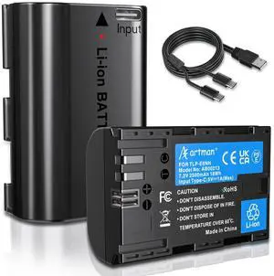 LP-E6NH Battery 2-Pack 2500mAh with Type-C Charging Port for Canon EOS R, R5, R6, R7, 5D 6D 7D Mark II III IV, 90D, 80D, 70D Cameras