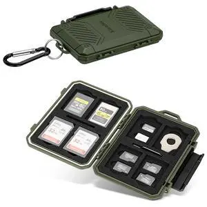 Memory Card Case with 18 Slots, IP67 Waterproof Anti-Shock Travel Camera Memory Card Holder for 8 SD SDHC SDXC Cards & 4 MicroSD TF MSD & 4 CFexpress Type-A Cards & 2 Nano SIM Storage - Green