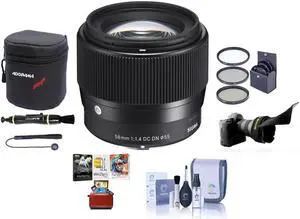 Sigma 56mm f/1.4 DC DN Contemporary Lens for Fujifilm X, Bundle with 55mm Filter Kit, Flex Lens Shade, Lens Pouch, Lens Cleaner, Cleaning Kit, Mac Software Kit, NS-3 Sling Strap