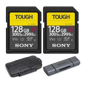 Sony 128GB UHS-II Tough G-Series SD Card 2-Pack Bundle with Case and Reader