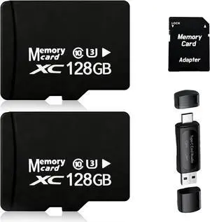 2-Pack 128GB MicroSDXC Memory Cards with SD Adapter & USB Reader, U3 V30 Standard Speed, High-Endurance TF Cards for Dash Cam & Security Camera, 4K Ready