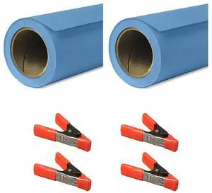 Savage 26"x36' Widetone Seamless Background Paper, Gulf Blue, 2-Pack, Bundle with 4x 1-1/4x1" Steel Spring Orange Clamp