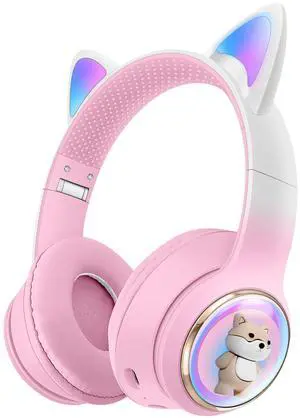 AKZ-51 Foldable Over-Ear Headphones with Cute Cartoon Pet Case, 100H Battery, Bluetooth 5.4, Lightweight Comfort for Kids Teens Travel AKZ 51 Cute Dog Pink
