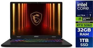 msi Cyborg 17 17.3" FHD 144Hz Gaming Laptop: Intel Core 7-240H, NVIDIA Geforce RTX 5060, 16GB DDR5, 1TB NVMe SSD, Type C, Wi-Fi 6E, Win 11 Home: Translucent Black B2RWFKG-074US