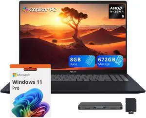 ASUS Vivobook 16 16" WUXGA Laptop, AMD Ryzen AI 5 330, 8GB RAM, 672GB Storage (512GB SSD+160GB Docking Station Set), AMD Radeon Graphics, Numeric Keypad, Win 11, Blue