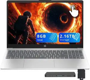 HP 15.6" FHD Touchscreen Laptop, AMD Ryzen 5 7520U, 8GB LPDDR5, 2.16TB Storage(2TB SSD+160GB Docking Station Set), AMD Radeon Graphics, Copilot, Numeric Keypad, Win 11 Pro, Silver