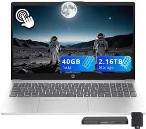 HP 15.6" FHD Touchscreen Laptop, Intel Core i5-1334U, 40GB DDR4, 2.16TB Storage(2TB SSD+160GB Docking Station Set), Intel Graphics, Numeric Keypad, Copilot, Windows 11, Silver