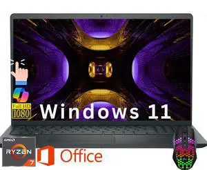 Dell 15'' Laptop Home & Business Laptop Notebook ,15.6" FHD Touch Display,AMD Ryzen 7 7730U (Beat I5-1235U),32GB RAM,512GB SSD, Wi-Fi, Lifetime Microsoft Office, Windows 11 Home/LED Mouse