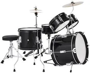 Kids Drum Set, 5-Piece 14 in Junior Drum Sets, Beginner Drums Set with Adjustable Throne, Cymbal & Two Pairs of Drumsticks, Musical Learning Drums Instruments Kit, for Children Ages 6-13(Black)