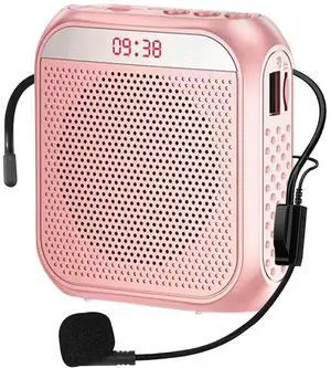 Portable Voice Amplifier for Teachers, 2200mAh Rechargeable Personal Amplifier Mic PA System Headset Microphone with Speaker for Teachers, Training, Meeting, Tour Guide, Yoga, Classroom (Rose)
