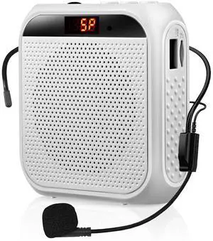 Portable Voice Amplifier for Teachers, Rechargeable Personal Amplifier Mic PA System Headset Microphone with Speaker for Teachers, Training, Meeting, Tour Guide, Yoga, Classroom (White)