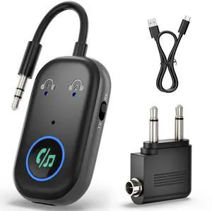 2025 Upgraded Airplane Bluetooth 5.4 Transmitter with Qualcomm Chipset, ElecMoga Airplane Travel Essentials Supports 2 AirPods or Headphones, 2-in-1 AUX Wireless Receiver for Gym, TV, Car, Audio