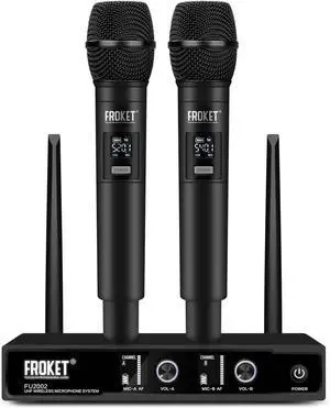 FU-2002 Dual Handheld UHF Wireless Microphone System - 260ft Range, Auto Pairing, LCD Display for Church/Speech/Meeting