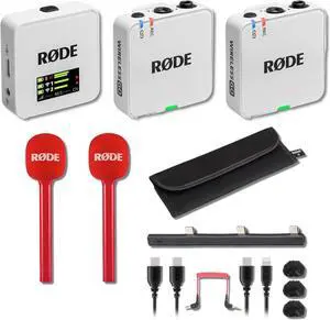 Rode Wireless GO (Gen 3) Compact Wireless Microphone System (White) with 2X Red Interview GO Handheld Adapters