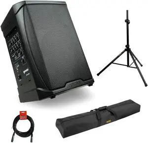 Gemini Sound GSP-L2200PK Indoor 2200 Watt with 15" Inch Woofer, LED Party Lights, Built in Media Player, and Included Microphone and Speaker Stand Bundle with Polsen M-85 Handheld Microphone, Auray MS