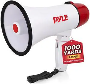 20W Megaphone Bullhorn - 5.4'' x 8.6'' Portable Megaphone, Projection Range 1000 Sq. Yards, Voice Talking & Siren Alert, Shoulder Strap, Battery Operated, (White)
