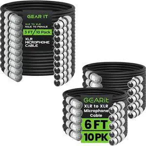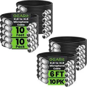 GEARit XLR Cable (10 ft 10 Pack) Bundle (6 ft 10 Pack), Male to Female Microphone Cable 3-Pin Balanced Shielded Mixer, Recording Studio, Podcast