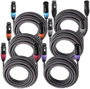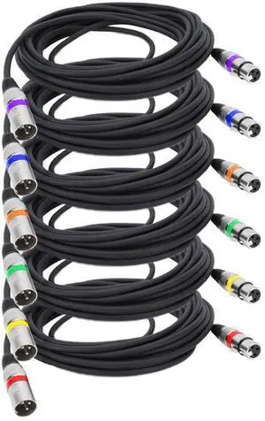 XLR Cables 15ft 6 Pack, Microphone Cable Male to Female, XLR Speaker Cable 6 Color Gold-Plated 3-Pins for Microphone, Mixer, Recording Studio- 15 Feet, 6 Pack