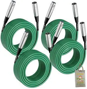 Fat Toad 50ft XLR Mic Cables (ShieldedPRO X Series) 4-Pack Green Balanced Audio Patch Cords with Shielded 24 AWG Wire for Studio Recording & Mixer Setup
