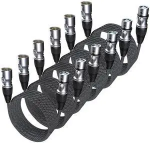 DMiotech 20 Pack XLR to XLR Cable, 3-Pin 22AWG OFC Male to Female Microphone Cable Mic Cord Wire Connector for Speaker Mixer, Studio, PA System, 1 Feet(Black)