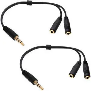 3.5mm Headphone Y Splitter Adapter Gold Plated 4 Pole 3.5mm Male to 3.5MM Headphone+Microphone (MIC) Female Plugs Audio Stereo Converter(2-Pack)