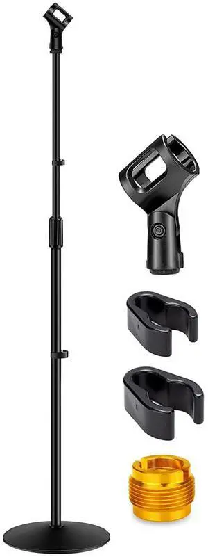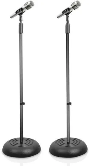 Universal Microphone Stand - Handheld Mic Compatible, Heavy Compact Base, Lightweight & Compact Design, 2.8 to 5 Ft Height Adjustable Clamp, Pivot Angle Clip, Home/Studio Use (Pair)