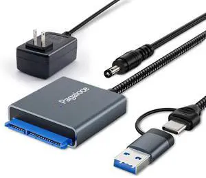 SATA to USB 3.0 and USB C Adapter Nylon Braided Cable for 2.5/3.5" SSD/HDD, USB 3.0 to SATA III External Converter with 12V/2A Power, Supports UASP Fast Transfer, Compatible with Windows/Mac/Linux