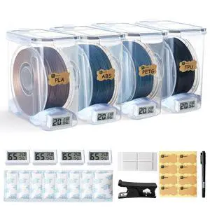 Filament Storage Box - 4 Pack 4L 3D Printer Filament Containers with 4 Hygrometers, Airtight Dry Boxes for Sealing and Protection, Water-Proof & Dust-Proof, Reusable Desiccant, Tube Cutter & Labels