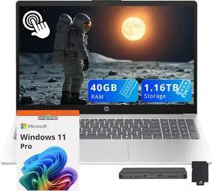 HP 15.6" FHD Touchscreen Laptop, Intel Core i5-1334U, 40GB DDR4, 1.16TB Storage(1TB SSD+160GB Docking Station Set), Intel Graphics, Numeric Keypad, Copilot, Windows 11 Pro, Silver
