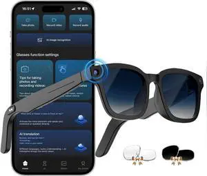 AI Smart Glasses with ChatGPT, 8MP Camera Glasses with Camera and Audio, AI Translation Sunglasses with 164 Languages, Bluetooth Sunglasses with Voice/Calling, 8-Hour Music, Photochromic Lens