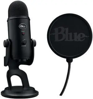 Logitech Blue Yeti Game Streaming Kit - USB Mic, Blue VO!CE, Custom Pop Filter (Blackout)