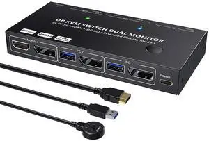 KCEVE 4K KVM Switch 2 Monitors 2 Computers HDMI DP, USB 3.0 KVM Switch Dual Monitor 4K@60Hz MST for 2 Computer Share Keyboard Mouse, with Wired Remote