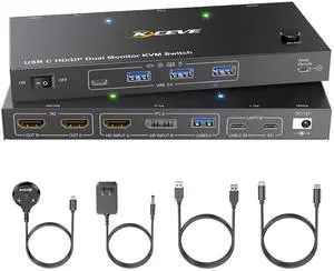 KCEVE KVM Switch 2 Monitors 2 Computers USB C HDMI, Dual Monitor USB 3.0 USB Typc C KVM Switcher Supports 4K@60Hz for 2 Computers Share Keyboard, Mouse and Monitor