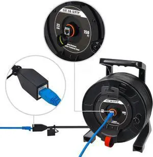 150FT Cat.6A S/FTP Indoor/Outdoor Retractable Ethernet Network Cable Extension Reel, RJ45 Female-Female Cat.6A Shielded Portable Weatherproof Ethernet Extension Cord
