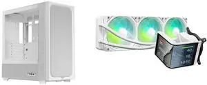 PCCOOLER CPS C3 T700 PC Case, Dual-Chamber Mid-Tower ATX Case, High-Airflow Computer Case, BTF Motherboard Supports, Sturdy Tempered Glass Front & Side Panels, White (Fans Not Included) and PCCOOLER CPS GT240 ARGB Display AIO CPU Liquid Cooler, 240mm Radiator, 280W TDP, Customizable 3.5" IPS LCD Cyber Style Display, Ceramic Bearing, for Intel LGA 1851/1700/1200/115X & AMD AM5/AM4, White