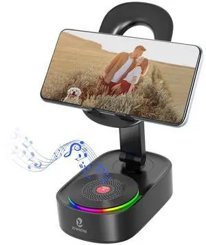 Cell Phone Stand with Wireless Bluetooth Speaker Compatible for iPhone/Samsung/iPad Tablet, Anti-Slip Design Phone Stand with HD Surround Sound for Home,Office,Outdoor etc.
