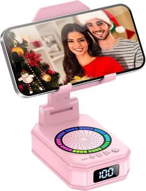 Gifts for Women, Cell Phone Stand with Wireless Bluetooth Speaker, Colorful LED Lights, Anti-Slip Base HD Surround Sound, Rechargeable, for Teens, Men, Women for Christmas Pink