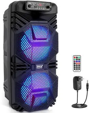 Pyle Dual 8" Portable Bluetooth PA Speaker System with Rechargeable Battery, Flashing Party Lights, and FM Radio - 600 Watt MAX
