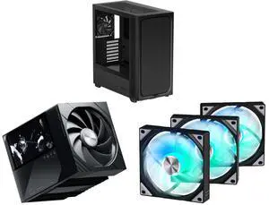 TRYX FLOVA Black Mid-Tower ATX PC Case Breathable Fabric-Crafted Tempered Glass ATX Case Quiet Cross-Flow Fan Three Speed Modes Computer Case 360mm Radiator Support USB Type-C 3.2 Gen 2x2 I/O Panel TRYX TURRIS 620 CPU Air Cooler 5.0" IPS Cu