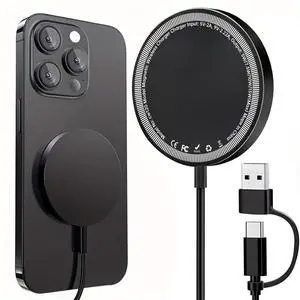 Magnetic Wireless Charger, 15W Fast Charging Pad, Ultra Slim Portable Charger with USB-C & USB-A Cable, Strong Magnetic Alignment Compatible with iPhone 17/16/15/14/13/12 Series, AirPods 4/3/2/Pro- Brand: JONZEN