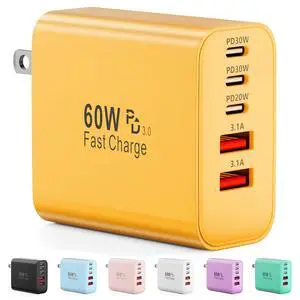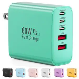 Specifications: The 5 in 1 USB charger has two USB-C ports with PD20W charging speeds and three USB-A ports with 3.1A/5V charging speeds. Charger is compatible with Power Delivery and Quick Charge 3.0, and the USB C charger can charge a cell phone from 15% to 60% in 30 minutes.