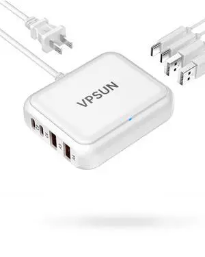 GaN 65W Charger Travel Adapters, PD 3.0 Fast Charging, 2 USB C Power Supply, 1 USB A, 3 Port USB Wall Charger for Steam Deck, Nintendo Switch, Rog Ally, MacBook, iPhone, Android, Tablet