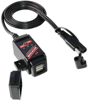 MP0608A 3.1Amp Motorcycle Dual USB Port SAE to USB Adapter Battery Monitor with Switch Control and LED Indicator