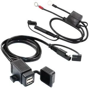 MP0609EA 3.1Amp Waterproof Motorcycle Dual USB Kit SAE to USB Adapter Cable with SAE Ring Terminal Cable Harness